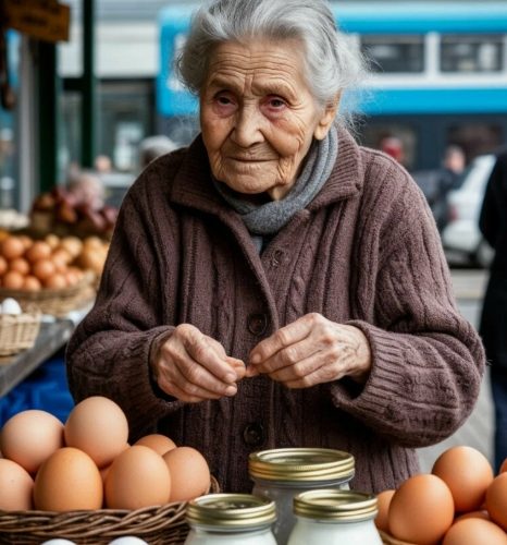 Na gradskoj pijaci život je tekao svojim tokom. Među tezgama sa povrćem, krompirom i mirisnim hlebom stajala je baka Marija. Svakog dana donosila je pažljivo složena domaća jaja — bela, smeđa, još topla od njenih ruku. Glas joj je zvučao vedro, iako su godine činile svoje: